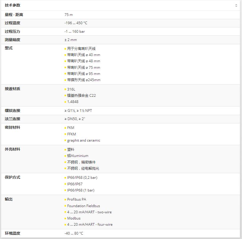 VEGAPULS 68雷達(dá)物位計應(yīng)用范圍